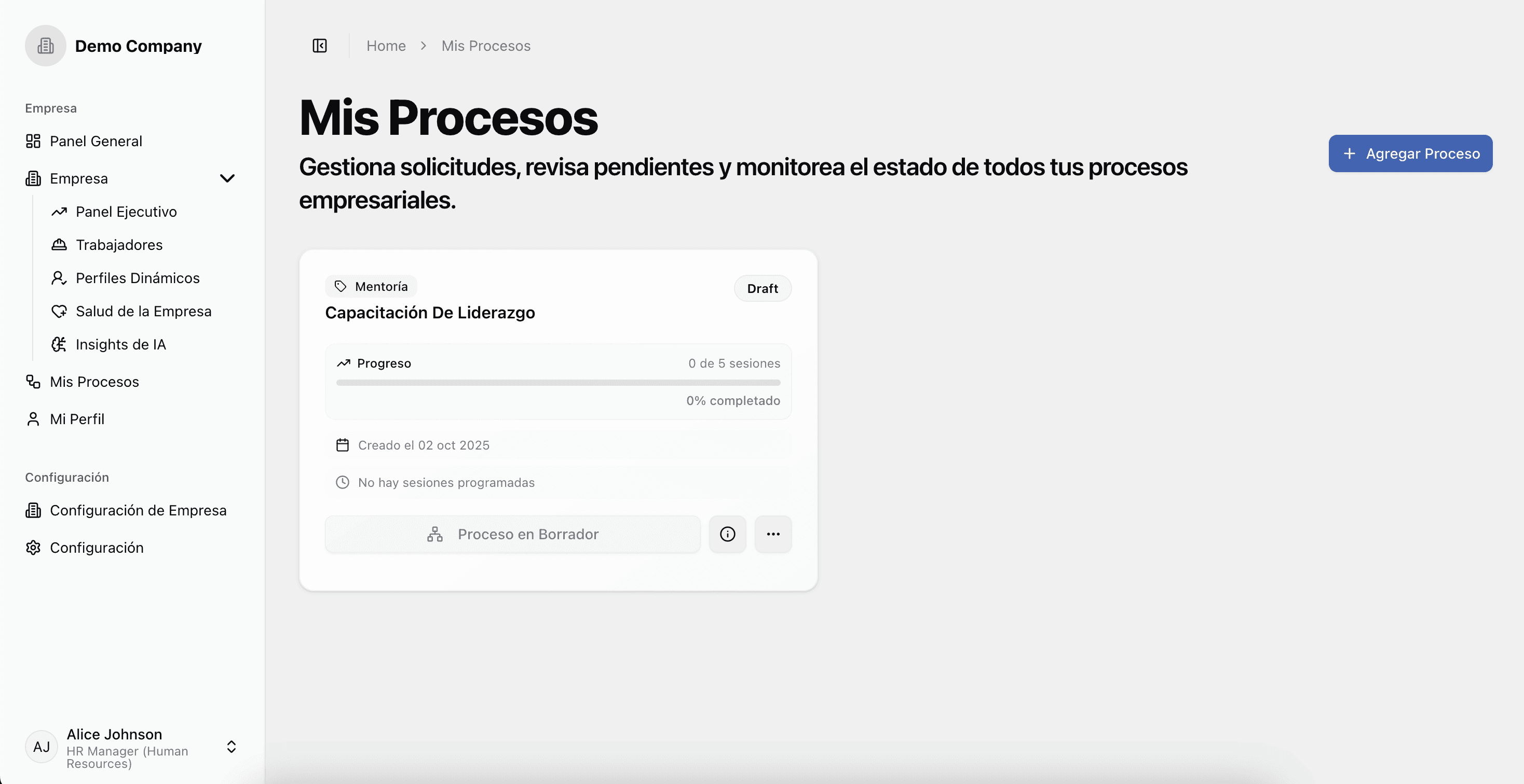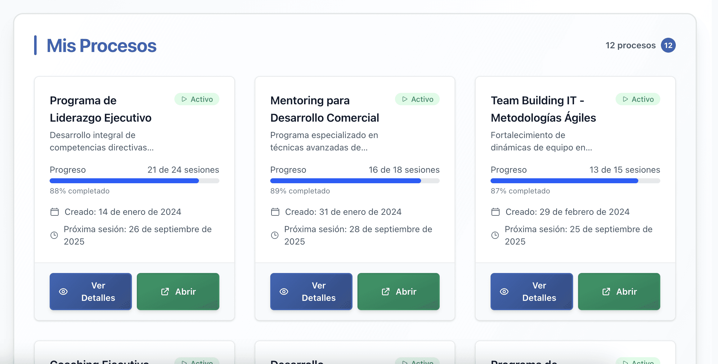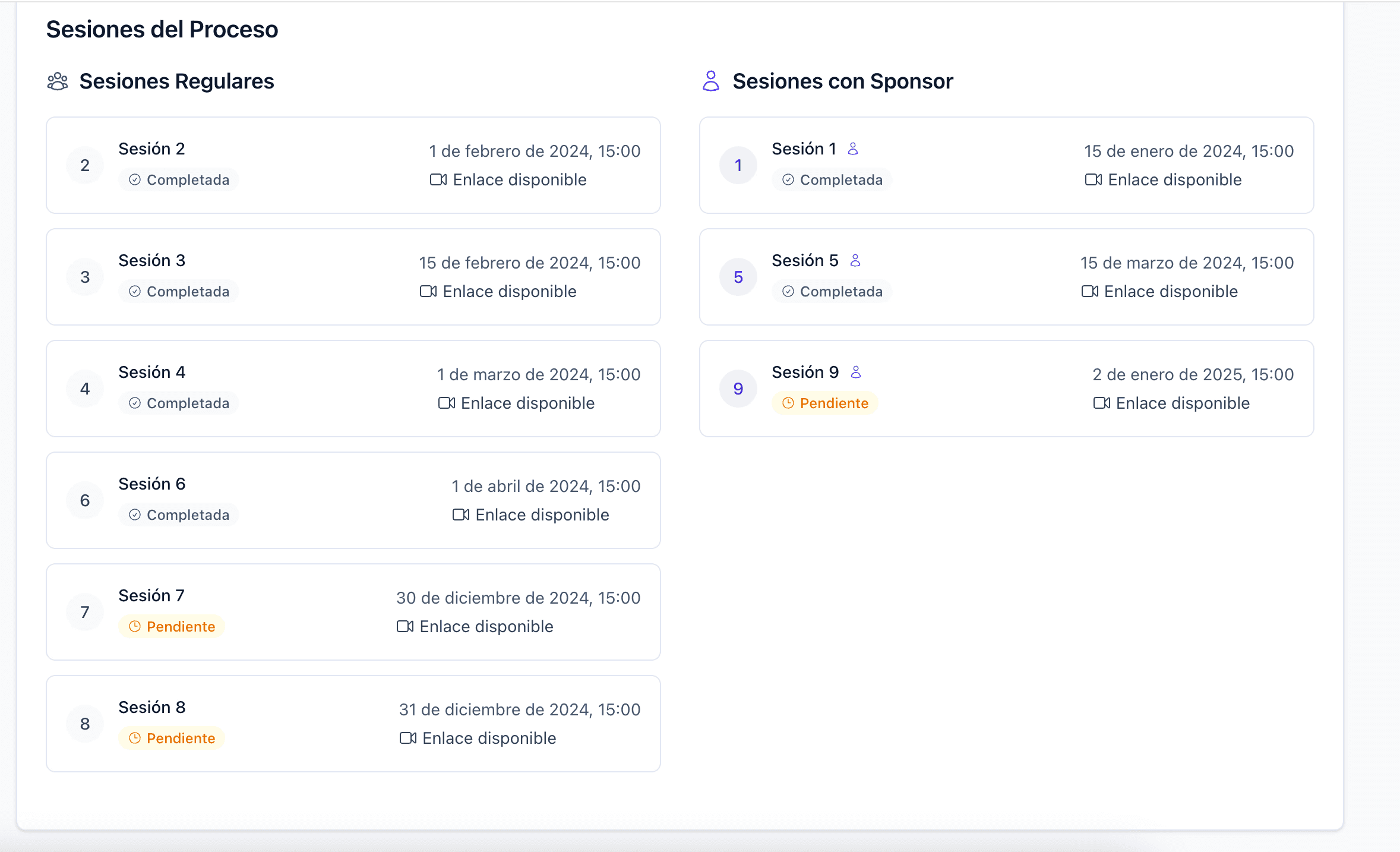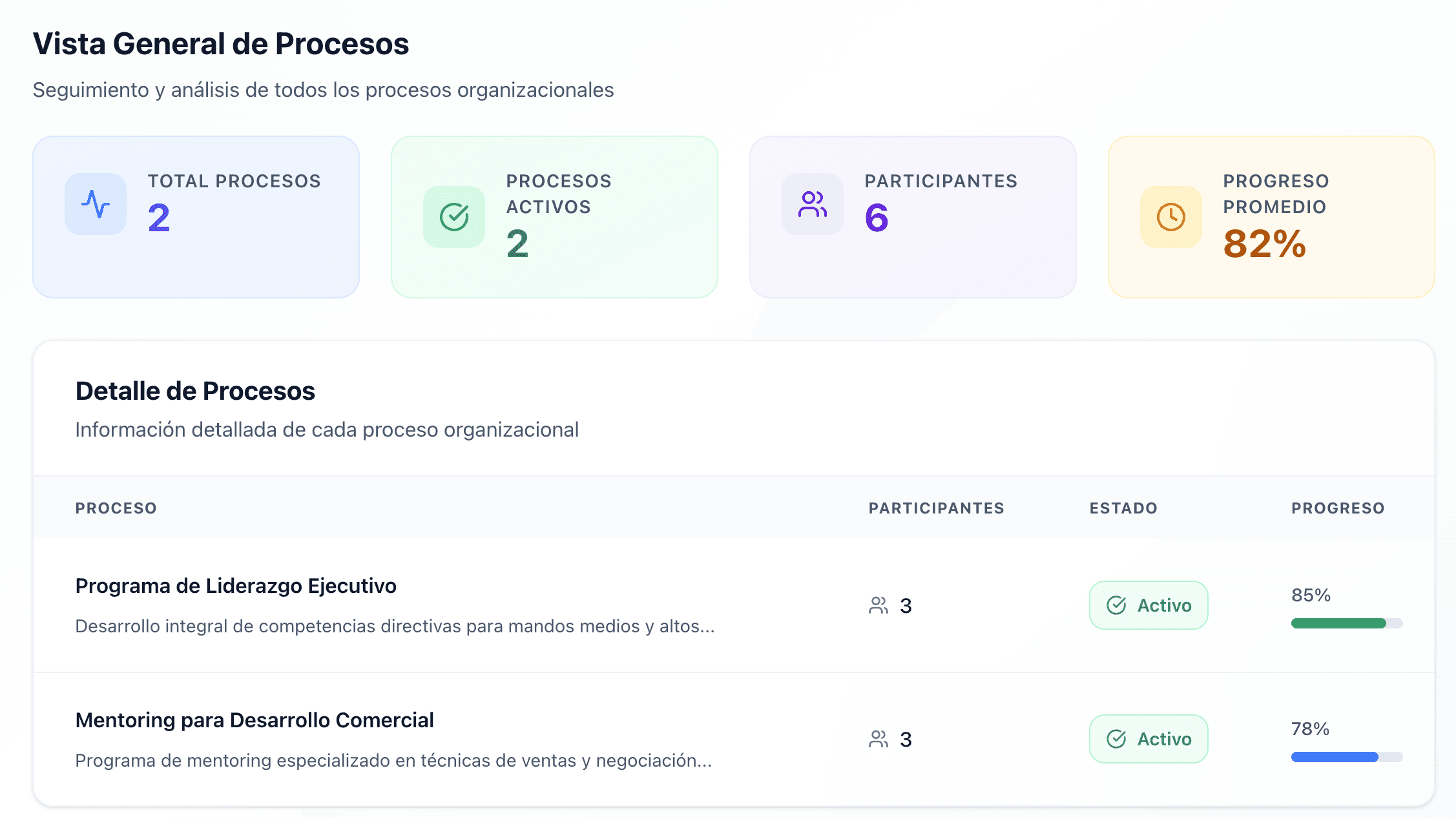 Sigue cada paso del proceso de acompañamiento en un solo lugar, con visibilidad total para líderes y equipos.